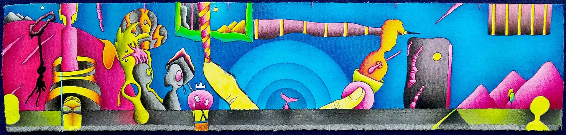 Born in Deming, New Mexico and raised in Los Angeles, California, Alvaro Alvillar is a self-taught artist based in Atlanta. He has been exhibiting his work in Los Angeles, Nashville, and Atlanta since 1993. Alvillar’s family emigrated from Chihuahua, Mexico to the US in the early 1950s. His Latin American roots are evident in his colorful palette and cultural iconography.
